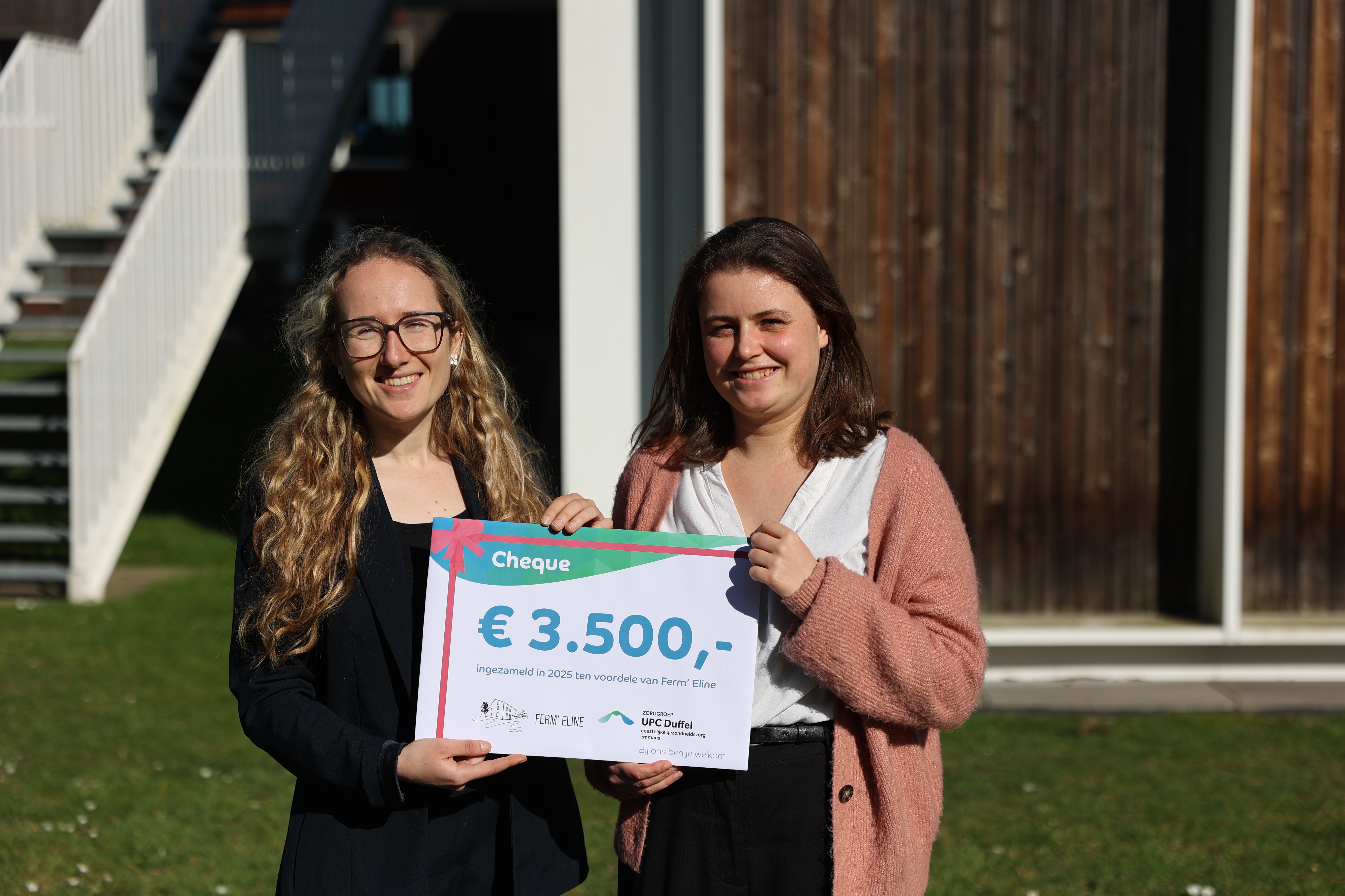Zorggroep UPC Duffel schenkt 3.500 euro aan vzw Ferm’ Eline. Het bedrag werd het voorbije jaar ingezameld via verschillende solidariteitsacties van medewerkers en vrijwilligers.