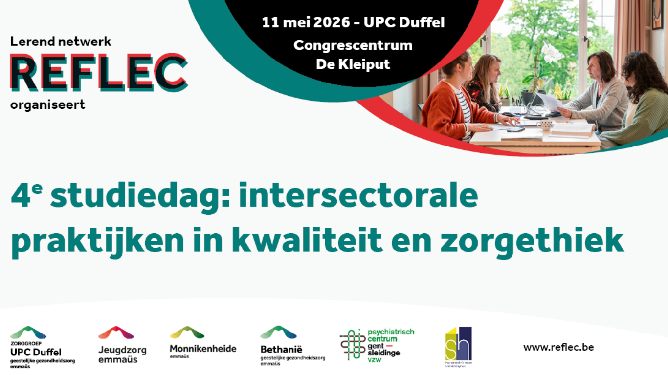 Op 11 mei organiseert ons Intersectoraal netwerk Reflec een 4e studiedag over kwaliteit & zorgethiek. Zorggroep UPC Duffel is lid van het netwerk, gastvoorziening voor de studiedag en goed vertegenwoordigd in de 12 sessies van deze studiedag.