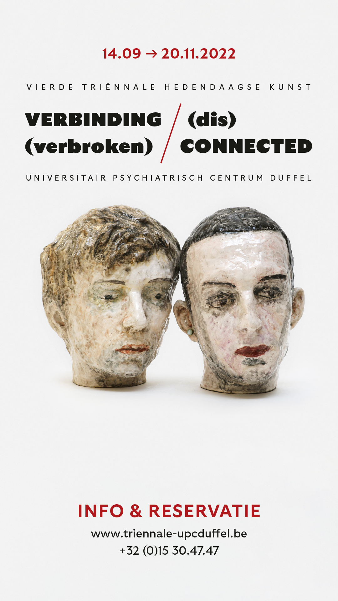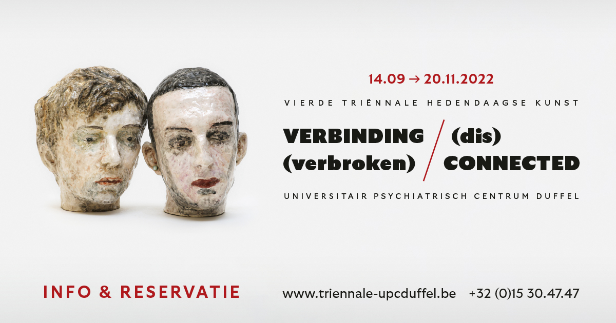 Op de campus van @Universitair Psychiatrisch Centrum Duffel vindt van 14 september tot en met 20 november de Vierde Triënnale Hedendaagse Kunst plaats, onder de titel ‘VERBINDING (verbroken) / (dis)CONNECTED’. Het Universitair Psychiatrisch Centrum Duffel wil met werken van gerenommeerde (inter)nationale kunstenaars het taboe rond psychische kwetsbaarheid verder doorbreken en kunst als integraal onderdeel van zorg onder de aandacht brengen. De tentoonstelling is gratis en vrij te bezoeken. Meer informatie: www.triennale-upcduffel.be